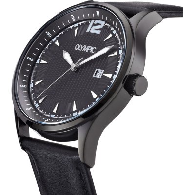 Cette montre Olympic a un boîtier Inox 43 mm en diamètre et est équipée d'un bracelet cuir. Le boîtier contient un mouvement Miyota et la montre est dotée d'un cristal Minéral..