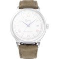 Ce bracelet de montre Orientest fait de cuir et est attaché à la montre au moyen de Épingles à ressort à dégagement rapide. Le bracelet a une taille de 21 mm et se ferme au moyen d'un boucle. Le bracelet est doté d'une monture droite, ce qui signifie qu'il convient à toutes les montres de la Orient dotées d'une monture droite..
