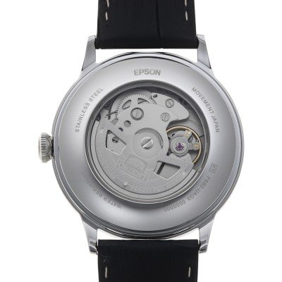 Cette montre Orient a un boîtier Inox 40.5 mm en diamètre et est équipée d'un bracelet cuir. Le boîtier contient un mouvement Seiko Instruments Inc. et la montre est dotée d'un cristal Minéral..