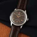 Cette montre Orient a un boîtier Inox 38 mm en diamètre et est équipée d'un bracelet cuir. Le boîtier contient un mouvement Epson et la montre est dotée d'un cristal Minéral..