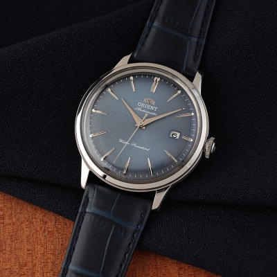Cette montre Orient a un boîtier Inox 40 mm en diamètre et est équipée d'un bracelet cuir. Le boîtier contient un mouvement Orient et la montre est dotée d'un cristal Minéral..