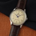 Cette montre Orient a un boîtier Inox 38 mm en diamètre et est équipée d'un bracelet cuir. Le boîtier contient un mouvement Epson et la montre est dotée d'un cristal Minéral..