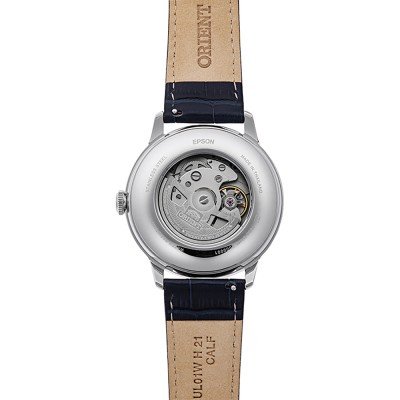Cette montre Orient a un boîtier Inox 41.5 mm en diamètre et est équipée d'un bracelet cuir. Le boîtier contient un mouvement Epson et la montre est dotée d'un cristal Minéral..