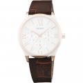Ce bracelet de montre Orientest fait de cuir et est attaché à la montre au moyen de Épingles à ressort. Le bracelet a une taille de 18 mm et se ferme au moyen d'un boucle. Le bracelet est doté d'une monture droite, ce qui signifie qu'il convient à toutes les montres de la Orient dotées d'une monture droite..