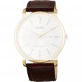 Ce bracelet de montre Orientest fait de cuir et est attaché à la montre au moyen de Épingles à ressort. Le bracelet a une taille de 22 mm et se ferme au moyen d'un boucle. Le bracelet est doté d'une monture droite, ce qui signifie qu'il convient à toutes les montres de la Orient dotées d'une monture droite..