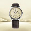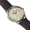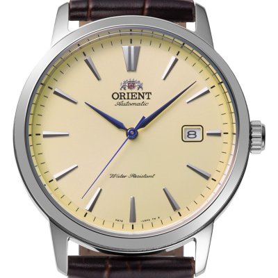Cette montre Orient a un boîtier Inox 42 mm en diamètre et est équipée d'un bracelet cuir. Le boîtier contient un mouvement Orient et la montre est dotée d'un cristal Minéral..