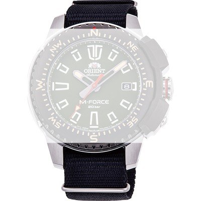 Ce bracelet de montre Orientest fait de textile et est attaché à la montre au moyen de Épingles à ressort. Le bracelet a une taille de 20 mm et se ferme au moyen d'un boucle. Le bracelet est doté d'une monture droite, ce qui signifie qu'il convient à toutes les montres de la Orient dotées d'une monture droite..