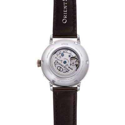 Cette montre Orient a un boîtier Inox 41 mm en diamètre et est équipée d'un bracelet cuir. Le boîtier contient un mouvement Orient et la montre est dotée d'un cristal Saphir antireflet unique..
