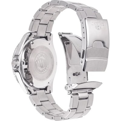 Cette montre Orient a un boîtier Inox 41.8 mm en diamètre et est équipée d'un bracelet métal. Le boîtier contient un mouvement Orient et la montre est dotée d'un cristal Saphire..