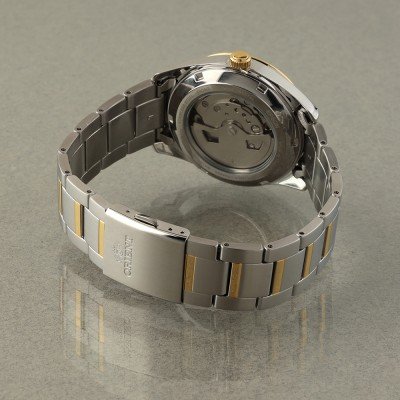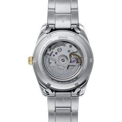 Cette montre Orient a un boîtier Inox 38.5 mm en diamètre et est équipée d'un bracelet Inox. Le boîtier contient un mouvement Orient et la montre est dotée d'un cristal Saphire..