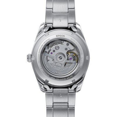 Cette montre Orient a un boîtier Inox 38.5 mm en diamètre et est équipée d'un bracelet Inox. Le boîtier contient un mouvement Orient et la montre est dotée d'un cristal Saphire..