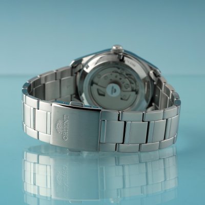 Cette montre Orient a un boîtier Inox 38.5 mm en diamètre et est équipée d'un bracelet Inox. Le boîtier contient un mouvement Orient et la montre est dotée d'un cristal Saphire..