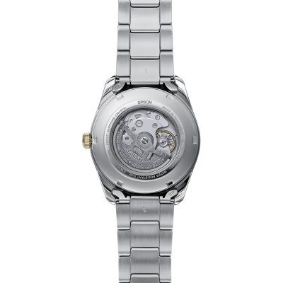 Cette montre Orient a un boîtier Inox 41 mm en diamètre et est équipée d'un bracelet Inox. Le boîtier contient un mouvement Epson et la montre est dotée d'un cristal Saphire..
