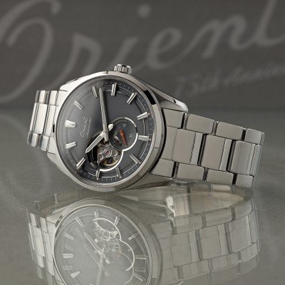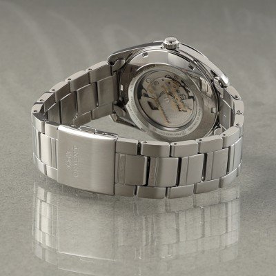 Cette montre Orient a un boîtier Inox 41 mm en diamètre et est équipée d'un bracelet Inox. Le boîtier contient un mouvement Seiko Instruments Inc. et la montre est dotée d'un cristal Saphire..