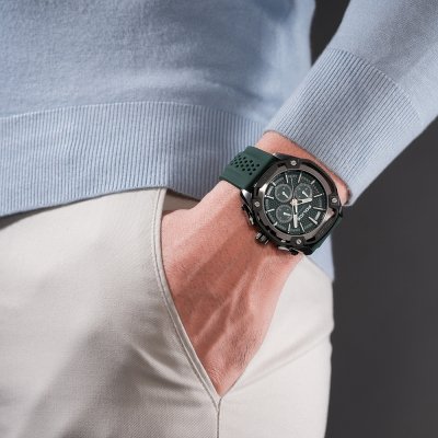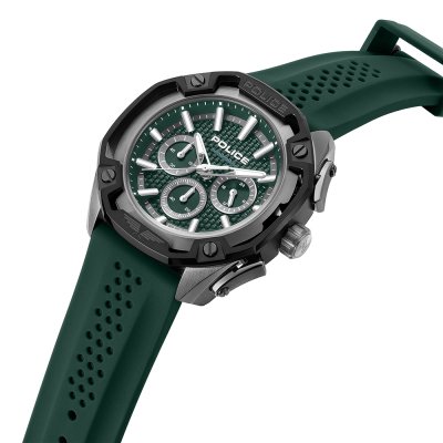 Cette montre Police a un boîtier Inox 46 mm en diamètre et est équipée d'un bracelet caoutchouc. Le boîtier contient un mouvement Seiko Instruments Inc. et la montre est dotée d'un cristal Minéral..
