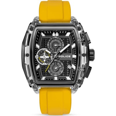 Cette montre Police a un boîtier Résine 46 mm en diamètre et est équipée d'un bracelet caoutchouc. Le boîtier contient un mouvement Seiko Instruments Inc. et la montre est dotée d'un cristal Minéral..