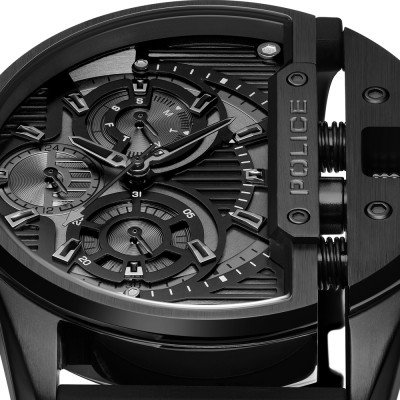 Cette montre Police a un boîtier Inox 45 mm en diamètre et est équipée d'un bracelet caoutchouc. Le boîtier contient un mouvement Seiko Instruments Inc. et la montre est dotée d'un cristal Minéral..