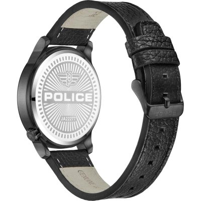 Cette montre Police a un boîtier Inox 44 mm en diamètre et est équipée d'un bracelet cuir. Le boîtier contient un mouvement Seiko et la montre est dotée d'un cristal Minéral..
