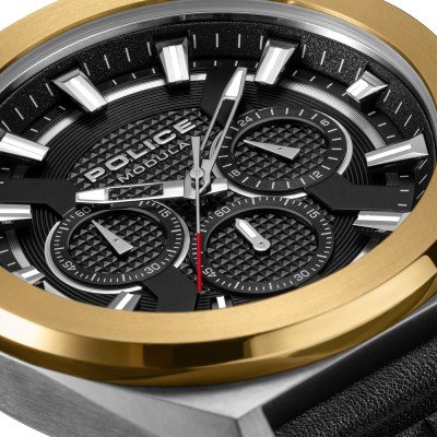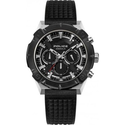 Cette montre Police a un boîtier Inox 46 mm en diamètre et est équipée d'un bracelet cuir. Le boîtier contient un mouvement Seiko Instruments Inc. et la montre est dotée d'un cristal Minéral..