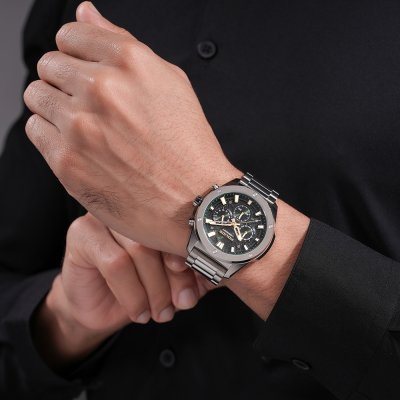 Cette montre Police a un boîtier Inox 43 mm en diamètre et est équipée d'un bracelet Inox. Le boîtier contient un mouvement Seiko Instruments Inc. et la montre est dotée d'un cristal Minéral..