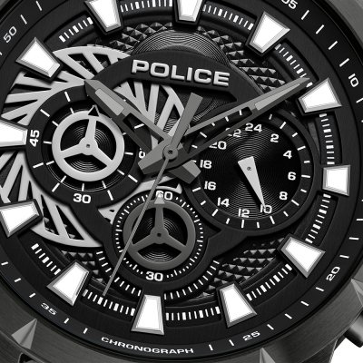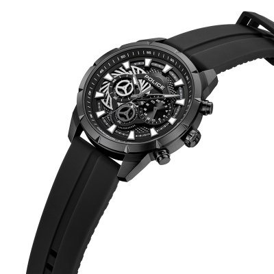 Cette montre Police a un boîtier Inox 45 mm en diamètre et est équipée d'un bracelet caoutchouc. Le boîtier contient un mouvement Seiko Instruments Inc. et la montre est dotée d'un cristal Minéral..