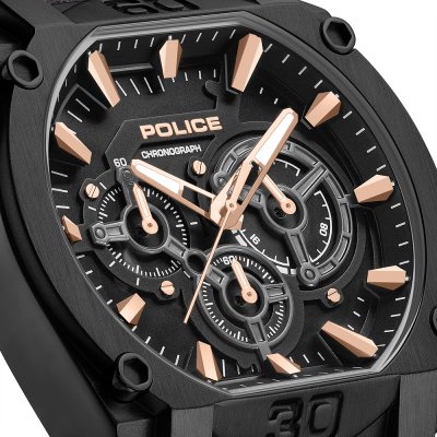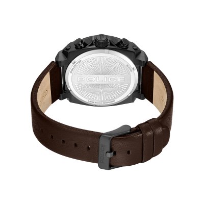 Cette montre Police a un boîtier Inox 45 mm en diamètre et est équipée d'un bracelet cuir. Le boîtier contient un mouvement Seiko Instruments Inc. et la montre est dotée d'un cristal Minéral..