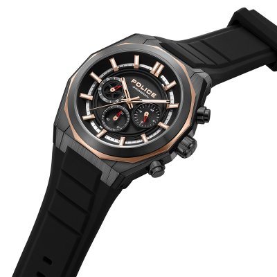 Cette montre Police a un boîtier Inox 46 mm en diamètre et est équipée d'un bracelet caoutchouc. Le boîtier contient un mouvement Seiko Instruments Inc. et la montre est dotée d'un cristal Minéral..