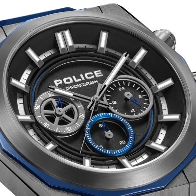 Cette montre Police a un boîtier Inox 46 mm en diamètre et est équipée d'un bracelet caoutchouc. Le boîtier contient un mouvement Seiko Instruments Inc. et la montre est dotée d'un cristal Minéral..