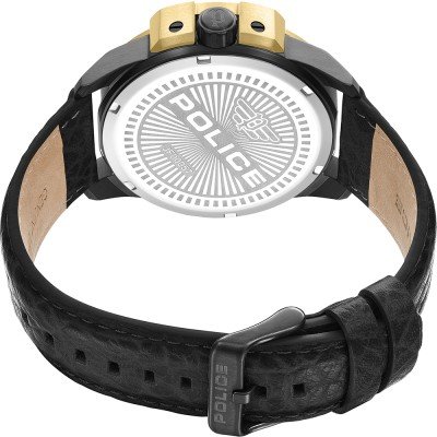Cette montre Police a un boîtier Inox 46 mm en diamètre et est équipée d'un bracelet cuir. Le boîtier contient un mouvement Miyota et la montre est dotée d'un cristal Minéral..