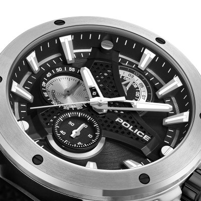Cette montre Police a un boîtier Inox 45 mm en diamètre et est équipée d'un bracelet caoutchouc. Le boîtier contient un mouvement Seiko Instruments Inc. et la montre est dotée d'un cristal Minéral..