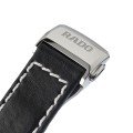 Ce bracelet de montre Radoest fait de cuir et est attaché à la montre au moyen de goupille et tube. Le bracelet a une taille de 22 mm et se ferme au moyen d'un boucle déployante. Le bracelet n'a pas de support droit, ce qui signifie que ce bracelet convient uniquement aux montres énumérées ci-dessous.