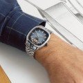 Comme on peut s'y attendre de la part de Raymond Weil, l'attention portée aux détails de cette montre Freelancer est admirable. L'élégante forme coussin du boîtier se retrouve dans les index des heures et les aiguilles. Le cadran dégradé présente différents niveaux et textures, ainsi qu'une fenêtre sur le mouvement. Le calibre maison RW1212 dispose d'une réserve de marche de 41 heures et d'une masse oscillante en forme de W, le pont formant un lien visuel avec le cadran de la montre. Les différentes facettes, lignes et courbes de la montre jouent avec la lumière, accentuant sa beauté.