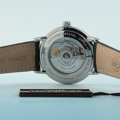Cette montre Raymond Weil a un boîtier Inox 39.5 mm en diamètre et est équipée d'un bracelet cuir. Le boîtier contient un mouvement Sellita et la montre est dotée d'un cristal Saphire..