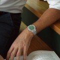 La collection Raymond Weil Millesime s'inspire de l'élégance des montres du milieu du siècle dernier, réimaginée dans un contexte moderne. Plutôt que d'opter pour la facilité et de reproduire les modèles du passé, Raymond Weil nous offre une nouvelle interprétation du charme vintage, avec pour résultat une montre à la fois intemporelle et actuelle. La montre Millesima plaira aux amateurs de style vintage et aux afficionados de la haute horlogerie. Le "cadran sectoriel" présente des finitions contrastées : le chemin de fer des heures est lisse, celui des minutes est arrondi et la zone centrale du cadran présente une délicate structure verticale en brosse. Trois pistes concentriques distinctes progressent en taille, des secondes (180 marqueurs) aux minutes (60 marqueurs) et aux heures (12 marqueurs), pour une lecture précise de l'heure, avec l'affichage de la petite seconde à 6 heures, positionné dans un cercle encastré soigné. Le cadran est enchâssé dans un boîtier en acier inoxydable doté d'un verre saphir traité antireflet. La lunette est décorée d'un brossage satiné vertical contrastant avec le biseau hautement poli. Animée par un mouvement automatique RW4251 (basé sur le SW260) avec rotor en W personnalisé, doté de 31 rubis, battant à 28 800 b/h avec 41 heures de réserve de marche, la Millesime juxtapose un charme rétro, un mouvement moderne et une attention aux détails qui contribuent tous à l'excellent niveau général de finition.