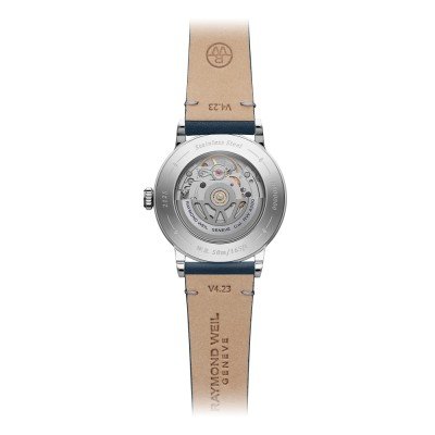 Cette montre Raymond Weil a un boîtier Inox 35 mm en diamètre et est équipée d'un bracelet cuir. Le boîtier contient un mouvement Sellita et la montre est dotée d'un cristal Saphire..