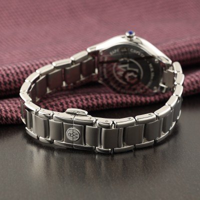Cette montre Raymond Weil a un boîtier Inox 32 mm en diamètre et est équipée d'un bracelet Inox. Le boîtier contient un mouvement ETA et la montre est dotée d'un cristal Saphire..