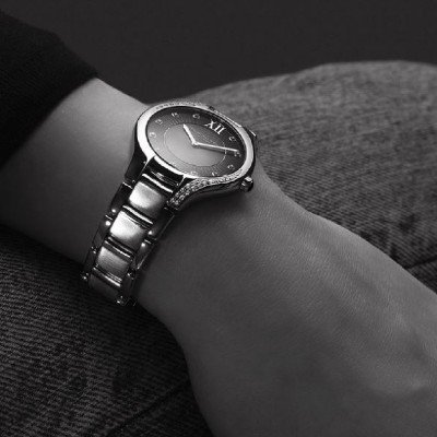 Cette superbe montre pour femme Noemia est incrustée de 47 diamants véritables (0,226 ct) ; 36 diamants sertis en cascade scintillante le long du boîtier et 11 index. Nommées d'après la petite-fille de Raymond Weil, les montres Noemia représentent la féminité et la grâce intemporelles.