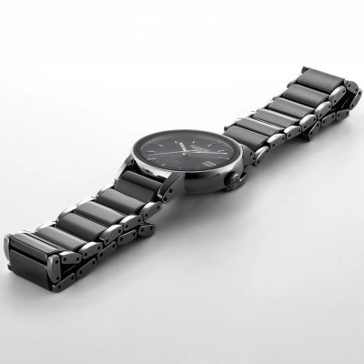 Cette montre Roamer a un boîtier Inox 30 mm en diamètre et est équipée d'un bracelet Acier inoxydable et céramique. Le boîtier contient un mouvement Ronda et la montre est dotée d'un cristal Saphire..