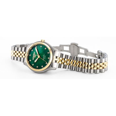 Cette montre Roamer a un boîtier Inox 31 mm en diamètre et est équipée d'un bracelet Inox. Le boîtier contient un mouvement Ronda et la montre est dotée d'un cristal Saphire..