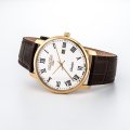 Cette montre Roamer a un boîtier Inox 40 mm en diamètre et est équipée d'un bracelet cuir. Le boîtier contient un mouvement Ronda et la montre est dotée d'un cristal Saphire..