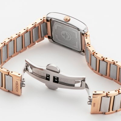 Cette montre Roamer a un boîtier Inox 22 mm en diamètre et est équipée d'un bracelet Inox. Le boîtier contient un mouvement Ronda et la montre est dotée d'un cristal Saphire..