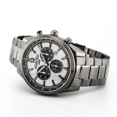 Cette montre Roamer a un boîtier Inox 43.5 mm en diamètre et est équipée d'un bracelet Inox. Le boîtier contient un mouvement Casio et la montre est dotée d'un cristal Saphire..