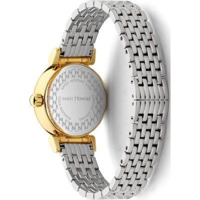 Cette montre Saint Honoré a un boîtier Inox 26 mm en diamètre et est équipée d'un bracelet Inox. Le boîtier contient un mouvement Ronda et la montre est dotée d'un cristal Minéral..