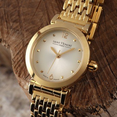 Cette montre Saint Honoré a un boîtier Inox 26 mm en diamètre et est équipée d'un bracelet Inox. Le boîtier contient un mouvement Ronda et la montre est dotée d'un cristal Minéral..