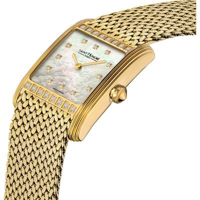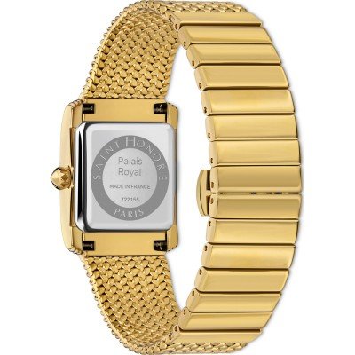 Cette montre Saint Honoré a un boîtier Inox 26 mm en diamètre et est équipée d'un bracelet Inox. Le boîtier contient un mouvement Ronda et la montre est dotée d'un cristal Minéral enduit saphir..