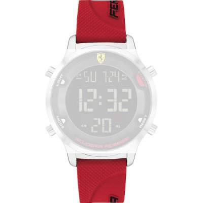 Ce bracelet de montre Scuderia Ferrariest fait de silicone et est attaché à la montre au moyen de Épingles à ressort. Le bracelet a une taille de 18 mm et se ferme au moyen d'un boucle. Le bracelet est doté d'une monture droite, ce qui signifie qu'il convient à toutes les montres de la Scuderia Ferrari dotées d'une monture droite..