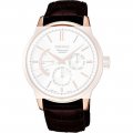 Ce bracelet de montre Seikoest fait de cuir et est attaché à la montre au moyen de Épingles à ressort. Le bracelet a une taille de 20 mm et se ferme au moyen d'un boucle. Le bracelet n'a pas de support droit, ce qui signifie que ce bracelet convient uniquement aux montres énumérées ci-dessous.