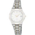 Ce bracelet de montre Seikoest fait de acier inoxydable et est attaché à la montre au moyen de goupille et tube. Le bracelet a une taille de 14 mm et se ferme au moyen d'un boucle déployante avec boutons poussoirs. Le bracelet n'a pas de support droit, ce qui signifie que ce bracelet convient uniquement aux montres énumérées ci-dessous.