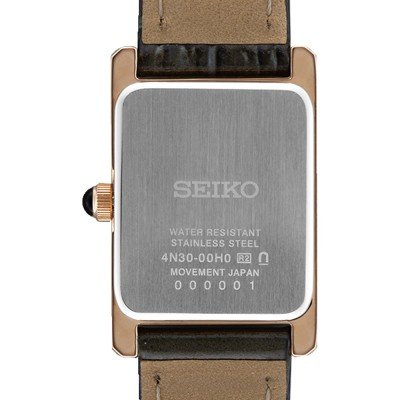 Cette montre Seiko a un boîtier Inox 18.9 mm en diamètre et est équipée d'un bracelet cuir. Le boîtier contient un mouvement Seiko et la montre est dotée d'un cristal Hardlex crystal..