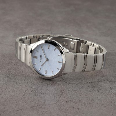 Cette montre Seiko a un boîtier Inox 30 mm en diamètre et est équipée d'un bracelet Inox. Le boîtier contient un mouvement Seiko et la montre est dotée d'un cristal Hardlex crystal..